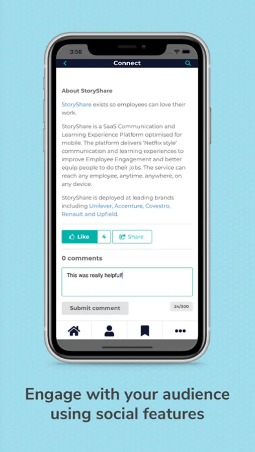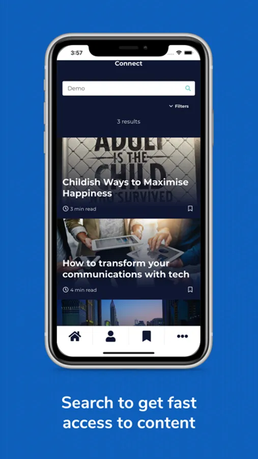 Connect encourages effortless employee engagement, collaboration and communication. Share company news via video, podcast and article posts. Employees can personalise content channels, read offline, save articles to read later, and receive push notifications on breaking news.