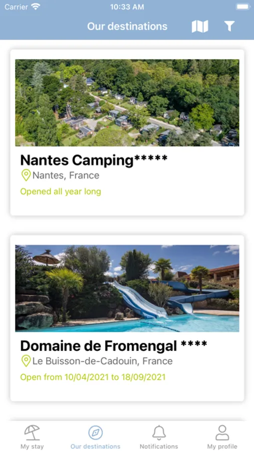 Before, during, and after your camping holiday, this app allows you to get the most out of your holiday and discover the surrounding area and the activities proposed. Don't miss the must-sees and dos, and make the most of your holiday with family or friends.