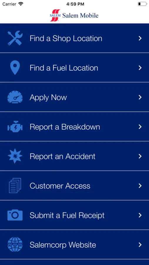 Salem Corporation is a transportation solution provider offering Full Service Leasing, Dedicated Carrier Operations, and Service & Maintenance since 1965. The Salem Mobile App is intended to serve as a central point of reference for employees, existing customers, prospective customers, & drivers all across the Southeastern United States. The app will provide an easy method to locate, call, or receive driving directions to all of our service and fuel locations from North Carolina across to Texas. One touch dialing to report Breakdowns or Accidents will be streamlined through the Salem Mobile for drivers. Applying for Employment to Salem Corporation or submitting Fuel Receipts will also be available in the initial release. Ongoing application development will be expected to meet future business needs and objectives.