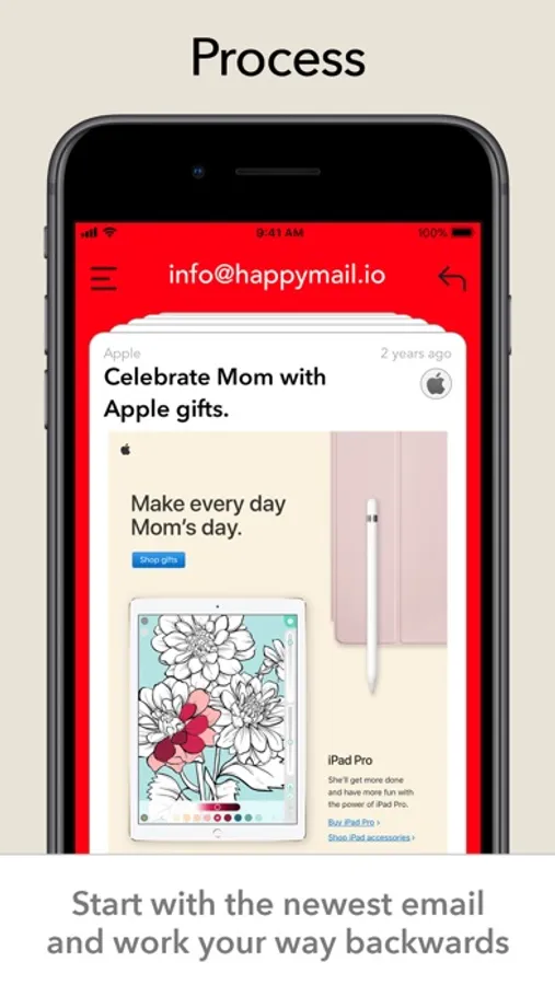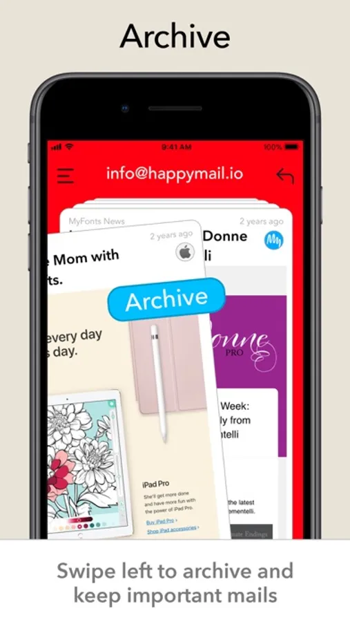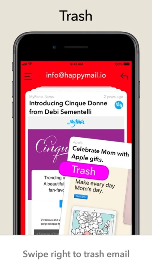 Swipe right to trash, left to archive. Happy Mail lets you process every email in your inbox from newest to oldest - with the goal of reaching inbox zero.