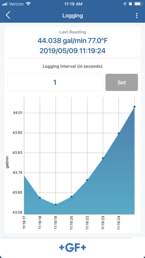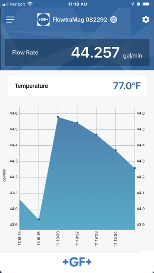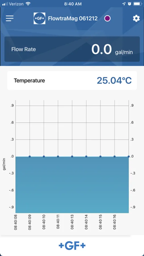 The GF Configuration Tool allows users to configure their 2581 FlowtraMag Meter to the parameters required for their system. Users can change the flow unit, totalizer unit, averaging, sensitivity, low flow cut off, span the 4 to 20 mA output, and monitor the FlowtraMag on their iOS device.