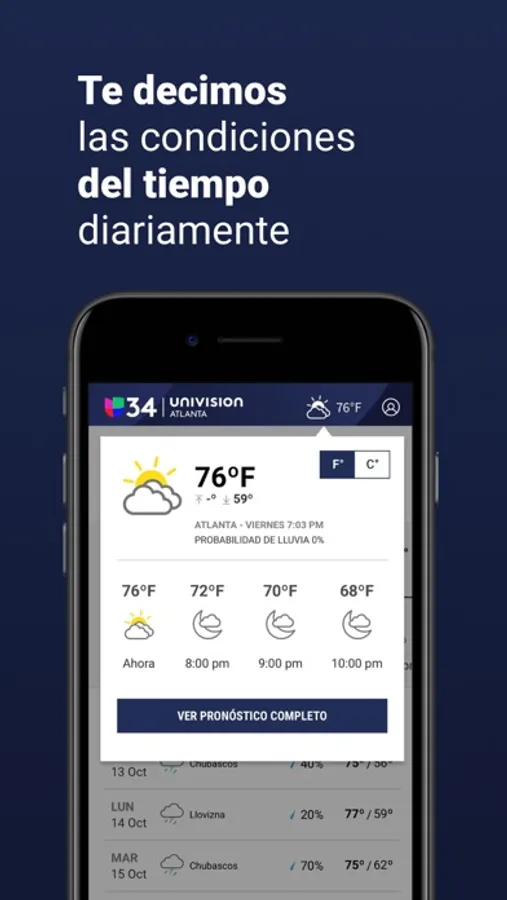 Pronóstico del tiempo con información del clima y condiciones meteorológicas.