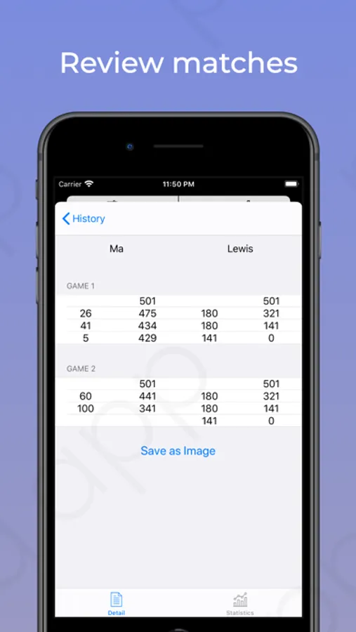 Pure Darts Scoreboard is a simple app to record score and view statistics information in darts matches. It provides three game modes of 301, 501 and 701, supports one or two players to play. After match, you can review match detail and performance chart.