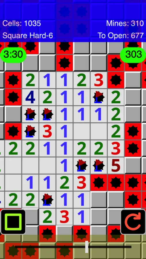 If a digit is revealed, it indicates the number of mines hidden in the adjacent cells. You can't open flagged cells. When you long-press a digit, the surrounding cells will open if you have correctly flagged.