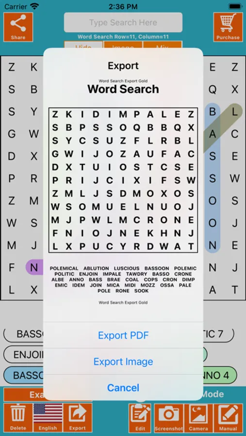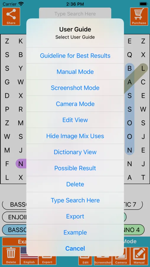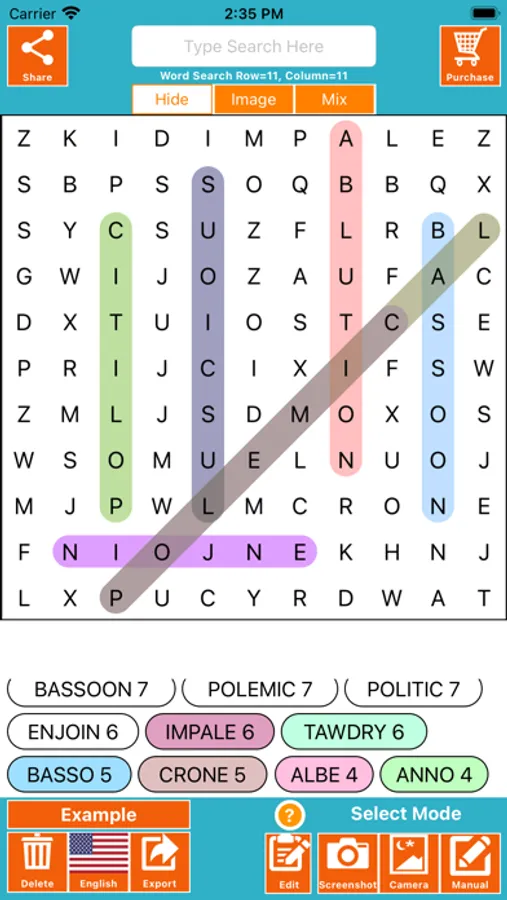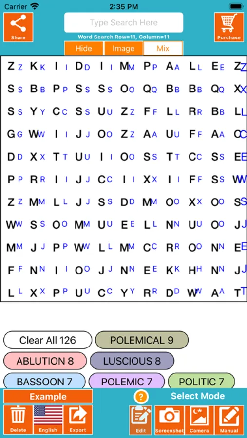 ◆ Camera mode you have to take photo of word search by App then crop & verify character.
