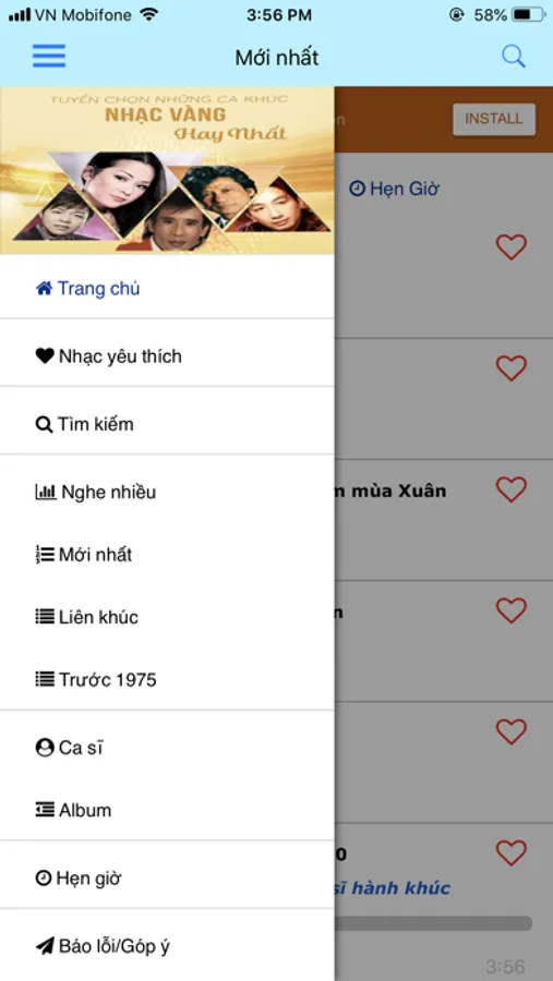 - So luong ca si nhac vang gan 100 ca si chuyen ve dong nhac vang noi tieng Viet Nam va hai ngoai nhu tu tru nhac vang, Quang Le, Tuan Vu, Nhu Quynh, Che Linh, Truong Vu, Huong Lan, Thanh Tuyen, Manh Dinh, Giao Linh, Duy Khanh, Khanh Ly, Mai Thien Van, Bao Yen, Tuong Nguyen, Nhat Truong, Bang Kieu va nhieu ca si nhac vang khac.... cuc ky day du so voi cac ung dung hien co tren thi truong, chung toi tu tin se mang den cho ban su hai long nhat.