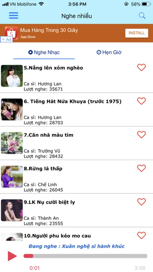 - Toc do nghe nhac cuc nhanh voi may chu luu tru hang dau Viet Nam, duoc dat tai trung tam du lieu FPT va Viettel, chac chan ban se khong phai ban tam ve viec nghe bi lag hay khi su dung 3G/4G khong nghe duoc nhac. Viec do da co chung toi xu ly cho ban, hay yen tam rang ban se luon nghe duoc nhac voi toc do nhanh nhat cua duong truyen.