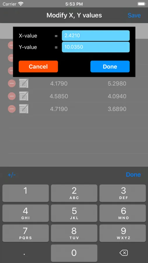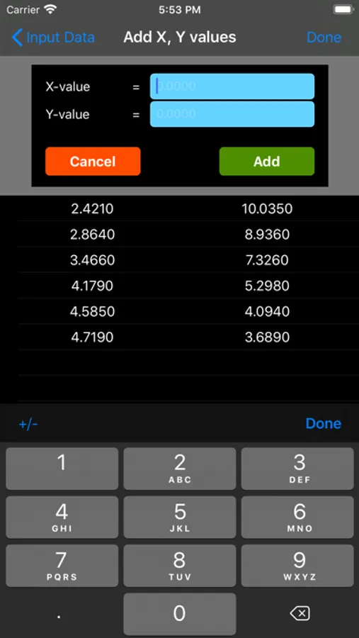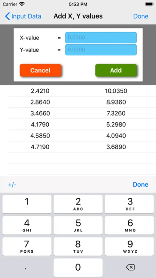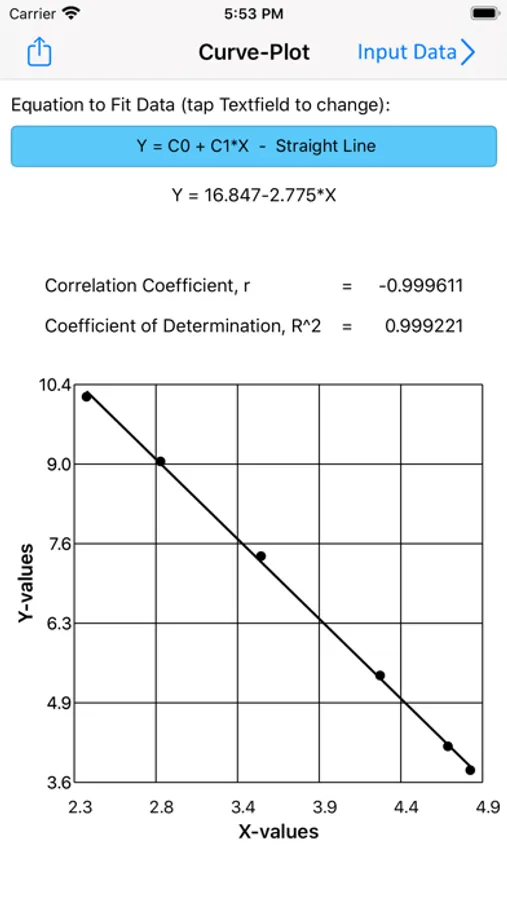 The curve-fitting technique used in this app is based on regression analysis by the method of least squares. The free version fits a straight line through a data-set using least squares analysis.