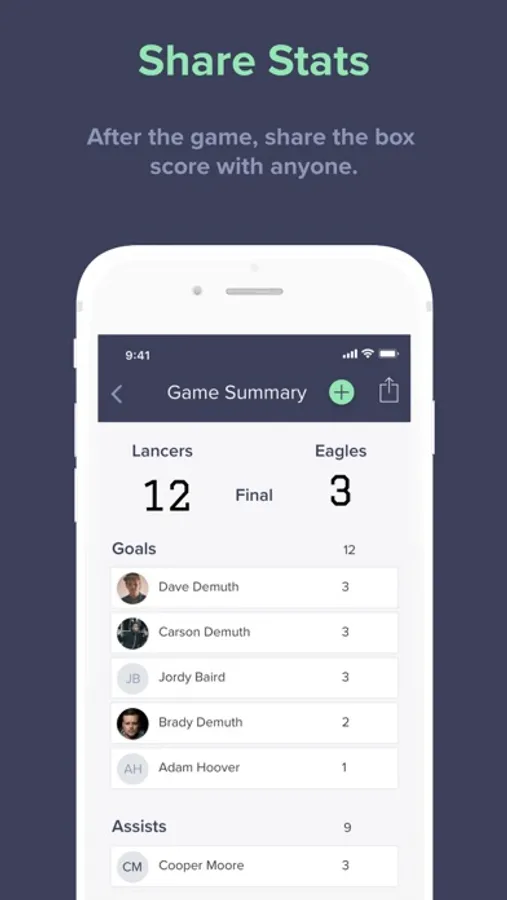 Ready to easily keep lacrosse stats and reference them quickly whenever you'd like? Download the app and create your organization and team in seconds.