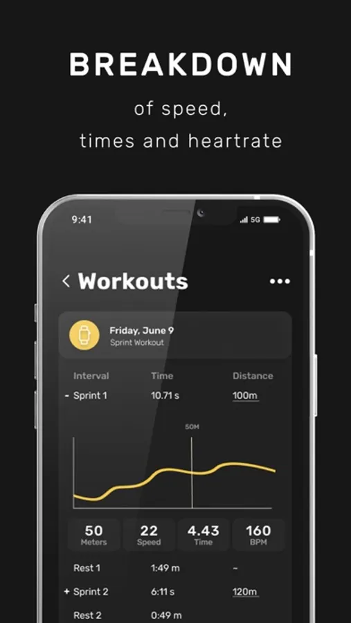 See a detailed breakdown of each workout including times, speed, heart rate on the Workout Log on the Startgun mobile app.