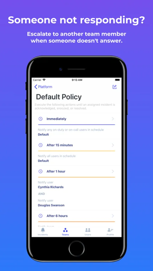 · View your on-call timeline and manage your teams and their members, escalation policies, and schedules right from the mobile app