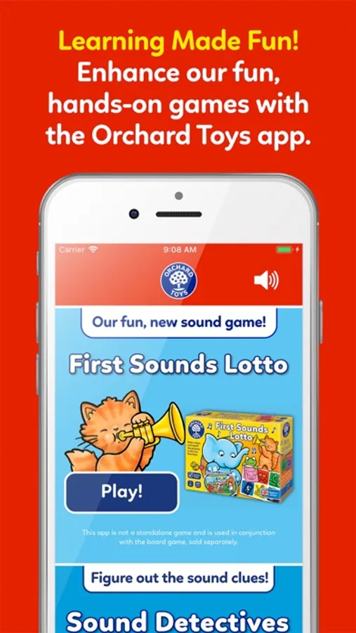 Orchard Toys educational games are now even more fun with our free app. To be used in conjunction with our Sound Detectives and First Sounds Lotto games (available to buy at www.orchardtoys.com), our app combines the benefits of hands-on play with the excitement of an interactive sound app. Perfect for promoting important listening and observation skills in children aged 2 and up.