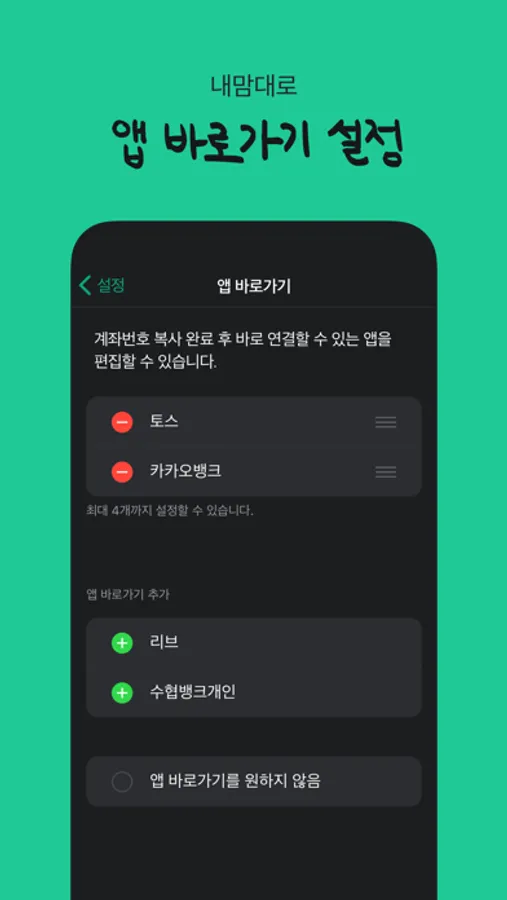 - 내가 원하는 형식으로 계좌번호를 복사할 수 있어요.