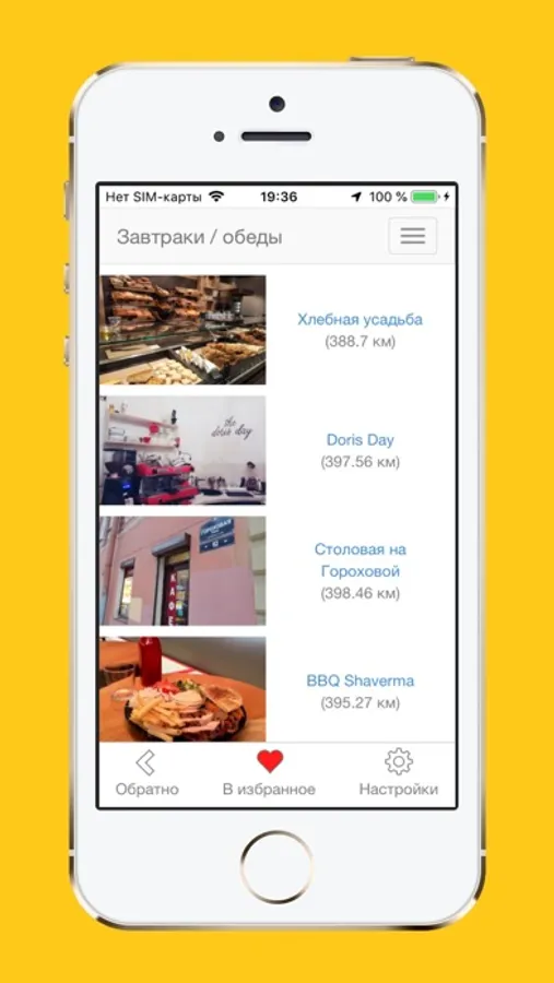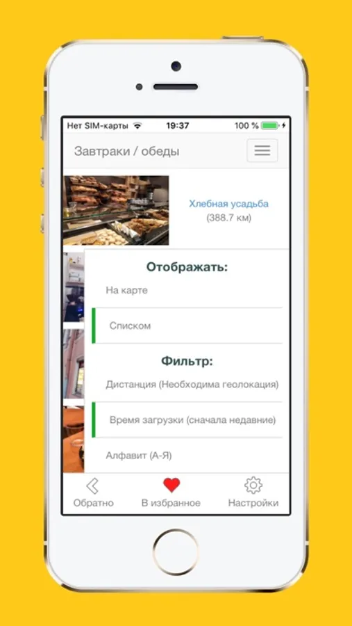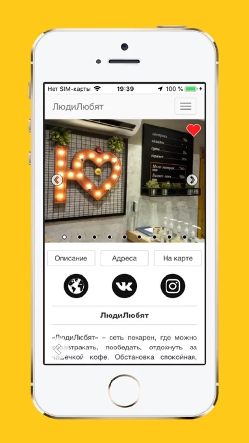 • Избранные места. Заинтересовало заведение? Добавьте его в «Моё избранное» и создайте собственную подборку. Больше ничего не потеряется. Все самое нужное – в вашем кармане!