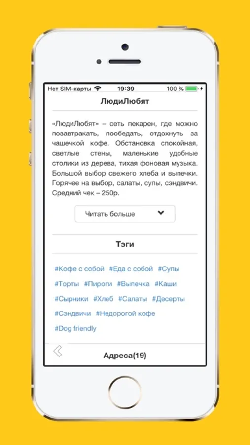 Так возникла идея создать приложение, которое всегда будет под рукой в нужный момент. Приложение, в котором мы соберем базу недорогих мест в разных районах города.