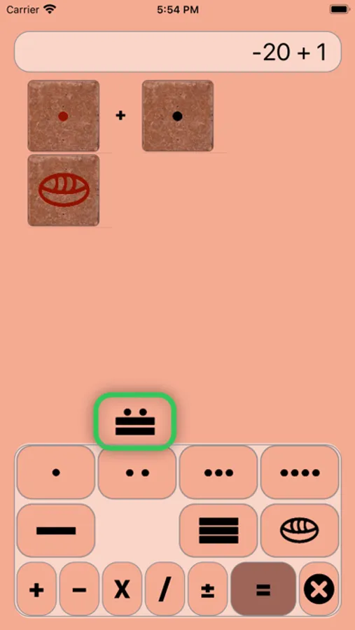 Tap or drag a glyph onto another glyph in the glyph pad to combine them. Dots can be dragged to bars, and bars to dots. This glyph pad simplifies, yet enables the full range of glyphs from 0 to 19 available as a single glyph tile in the mayan number system.