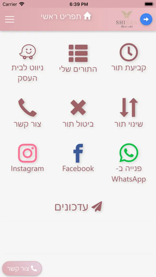 באפליקציה אפשר לקבוע תור, לנווט באמצעות Waze ולפנות אליי באמצעות WhatsApp.