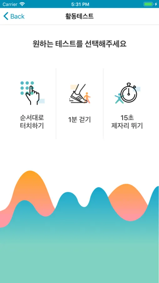 정확한 시간의 복약 후 3가지 활동 테스트를 통하여 본인의 활동성을 체크합니다.