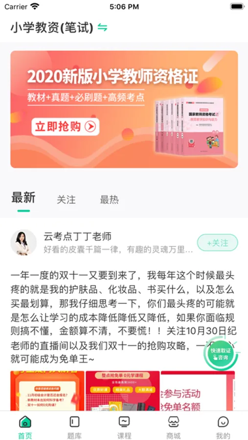 平台设置直播保过班、万人模考、公开课、真题题库、随堂作业、实时答疑服务各色服务......无论你是在职还是在校,零基础还是有经验,都能在这里找到适合自己学习方法。名师在线提供专业的教学服务,百万学员考证的学习利器,考试必备软件!