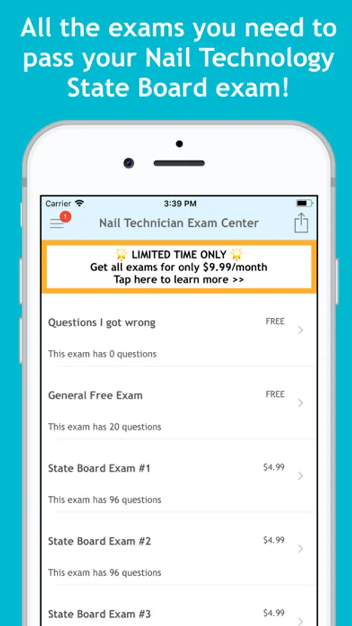 * Tens of Nail Tech exams each with tens of questions
