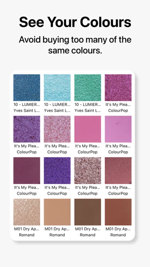 GlowinMe can help you avoid buying the same colours again. By creating swatch collections of your makeup products, you can easily compare the swatches between different products and make smart decisions on which products to buy next. Use the custom swatch view to rearrange your swatches to your liking.