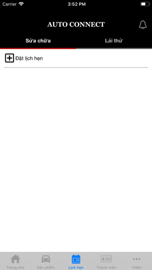 The third menu "lịch hẹn" is used to book repairing schedule. The dealer will receive information about the booking schedule in a back office web app and approve the schedule.