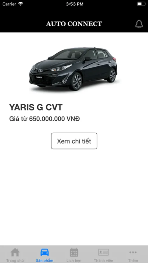 The last menu "thêm" provide more function such as call the dealer directly, view promotion list, sign in or sign out