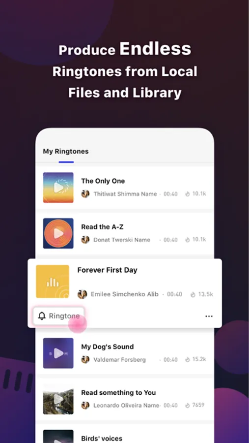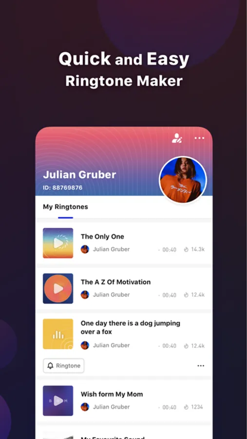 The Ringtoner is the first App that allows you to make ringtones through your phone. From here on out, you won't need a PC and never pay for a ringtone again. All you need is The Ringtoner. This best new ringtone app permit you to create your sound from local files and set them as the incoming calls, notification sounds and new alarm clock sounds. All you have to do is to choose your favorite ringtones and enjoy a nice ringtones experience with great design and flexibility!