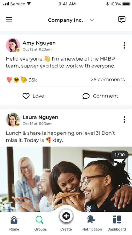• Each company has its own private feed. No external community can view or join the conversation within your company.
