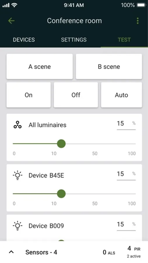 Test the performance of connected devices as well as defined lighting scenes and make adjustments if needed.