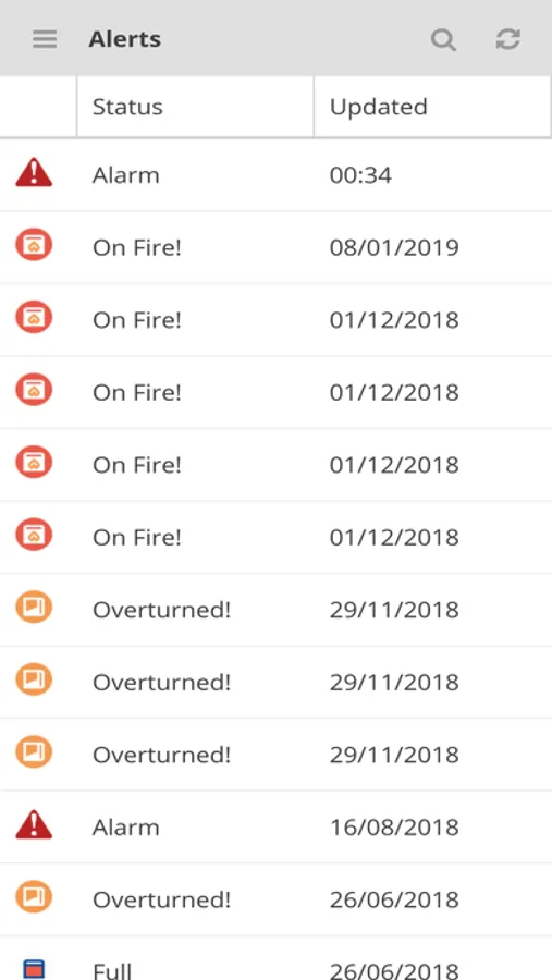 The system offers a main screen of alerts of the system, and different access ways to the information of the devices: through labels, through a map, or through direct access to individual devices.