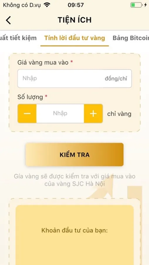 • App Đầu tư vàng tính toán chênh lệch giá vàng tự động dựa trên việc cập nhật giá vàng trong nước và giá vàng thế giới, tỷ giá USD/VND từ Ngân hàng thương mại VN theo thời gian thực. Mức chênh lệch này sẽ giúp nhà đầu tư có thêm cơ sở để quyết định đầu tư.
