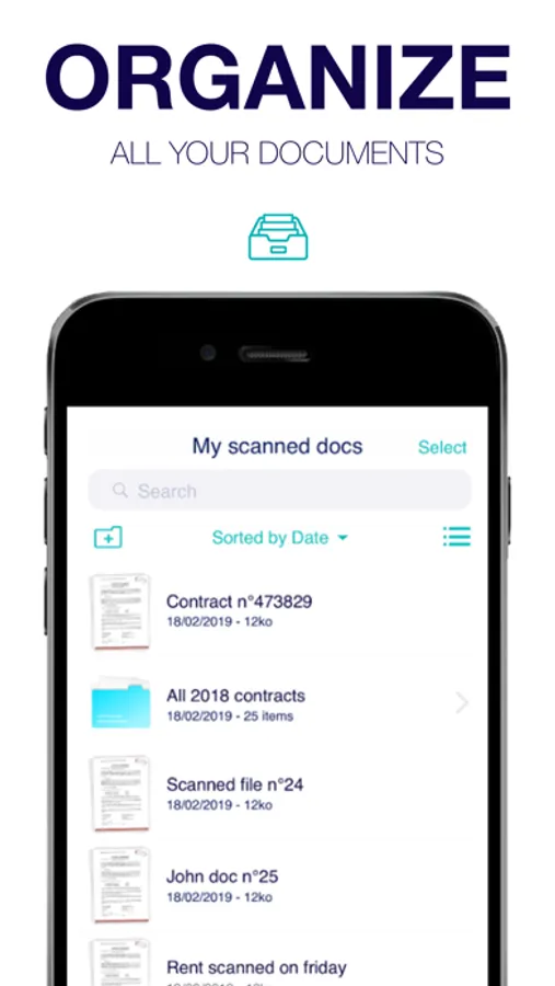 Manage all your scanned files or imported files with folders, search and organize functions, directly in the app.