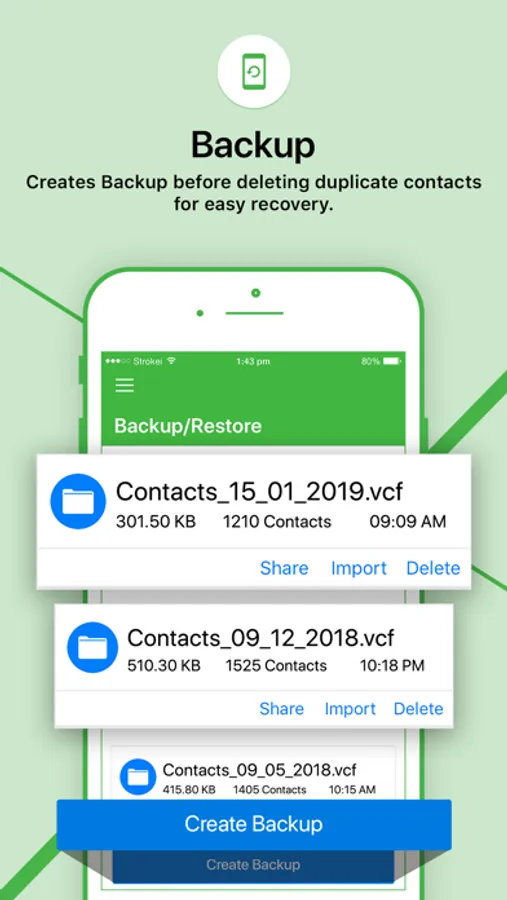 ● The backup file is saved in .vcf format and can be restored using Duplicate Contacts Fixer.