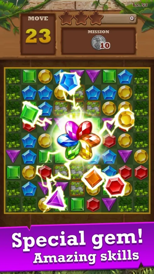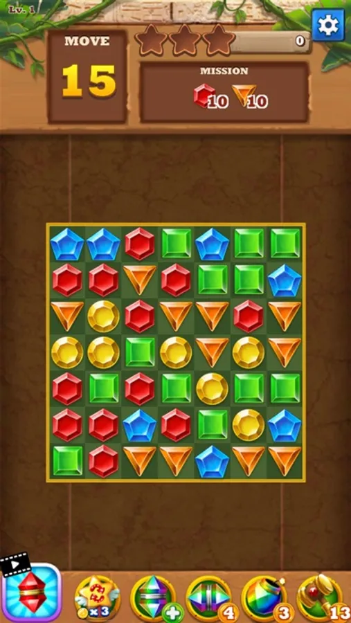 - Match 4 gems to create a special diamond that can blast all the gems in a row or column.