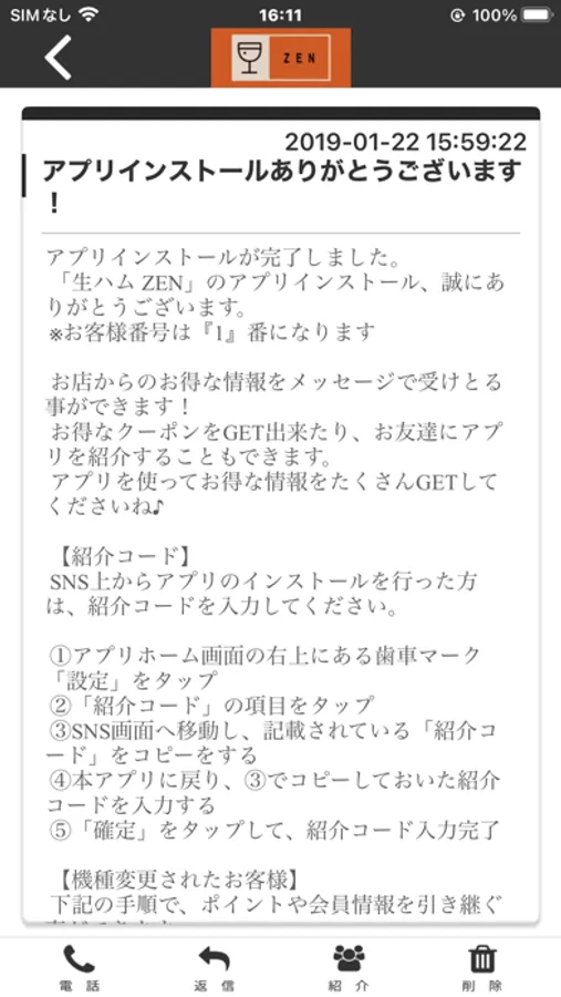 生ハムZENのアプリをSNSを通じてお友達に紹介する事ができます。