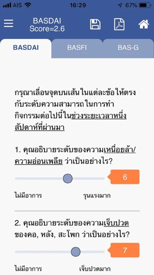 I would like to thank Professor Dr. Andrei Calin, Royal National Hospital for Rheumatic Diseases, United Kingdom, who developed the BASI1, and Lt. Col. Dr. Pongthorn Narongroeknawin, MD, Phramongkutklao Hospital, who translated and validated the Thai version of the BASI2.