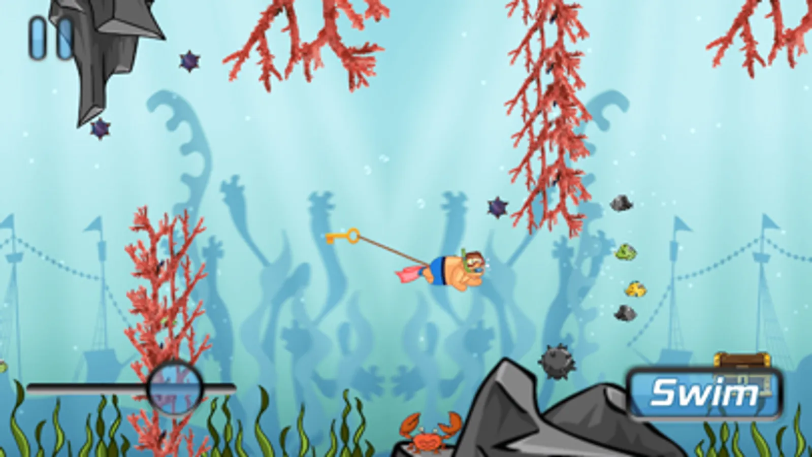There will be many difficulties in your journey to find the treasure. Be careful of hungry Sharks and deadly sea mines. You have to dive into the ocean caves, swim in the sea trees, you will face many sea mines which were planted for destroying ships.