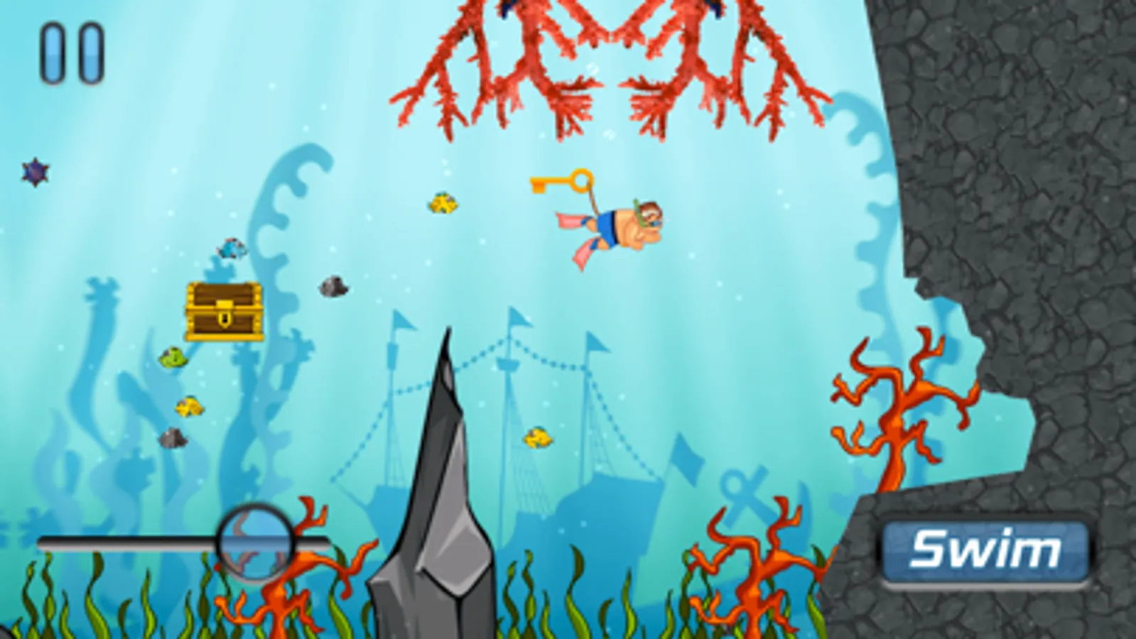 Sharks will definitely gives you a tough time and swim through hungry sharks into the deep sea is death. First you have to find the key of the treasure and the key is protected by many dangerous predators.