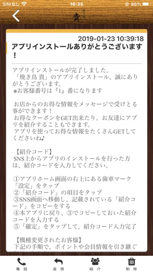 焼き鳥 貴のアプリをSNSを通じてお友達に紹介する事ができます。
