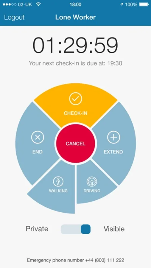 • ‘Check-In’, and set the Timer for the countdown to the next ‘Check-In’;