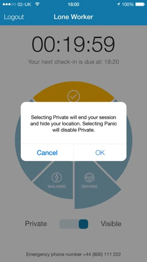 • select ‘Private’ which will end their welfare session and hide their location; and