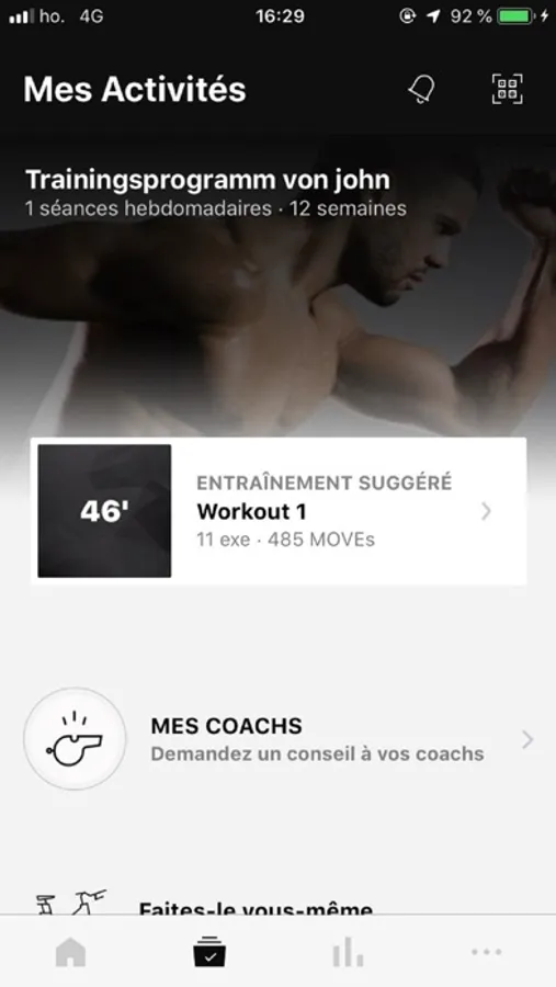 MON MOUVEMENT: Ce que vous avez choisi de faire: vous y trouverez votre programme, les cours que vous avez réservés, les défis auxquels vous vous êtes inscrit et toutes les autres activités que vous avez choisies de faire dans votre établissement.