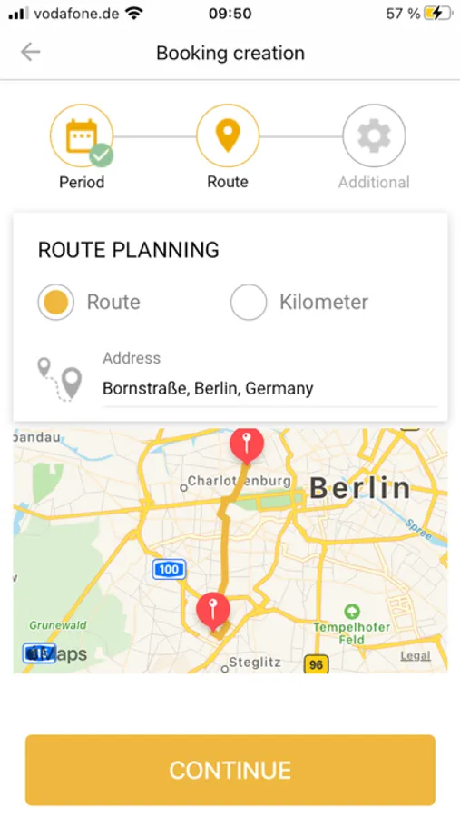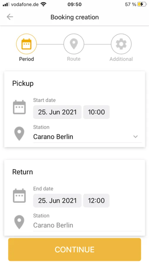 The CaranoCloud app makes it happen: book your company's pool vehicles - no matter where you are. With or without a specific destination, electric car or gasoline engine - find the right vehicle for your trip.