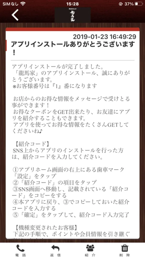 龍馬家のアプリをSNSを通じてお友達に紹介する事ができます。