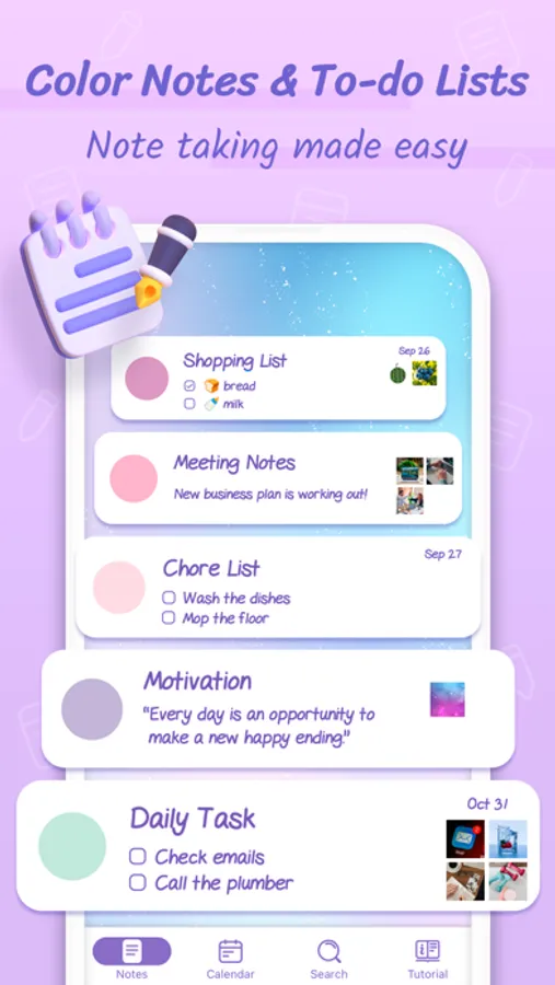 Organize your time and always remember important dates. Our latest Color Notes With Lock & To Do list will help you arrange your private and business life with style. Use this daily journal app to write memos, notes, create to-do lists and make calendar notes. The new notebook with widget will save you a lot of time and make your life easier. Download Color Notes With Lock & To Do list now and stay organized with the best note taking app.