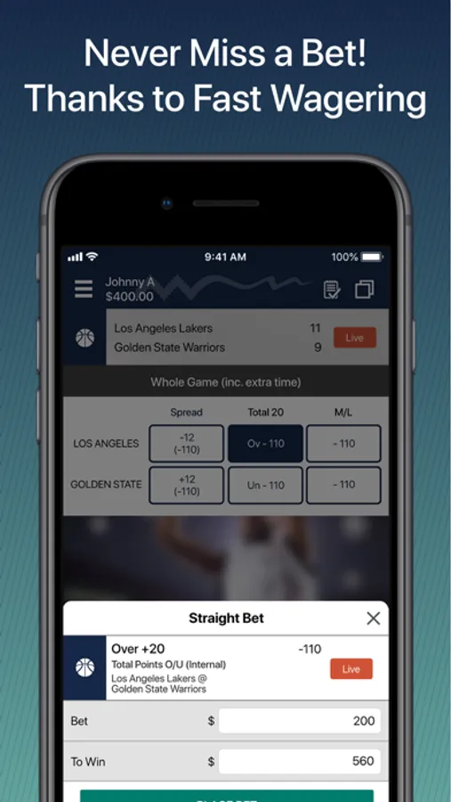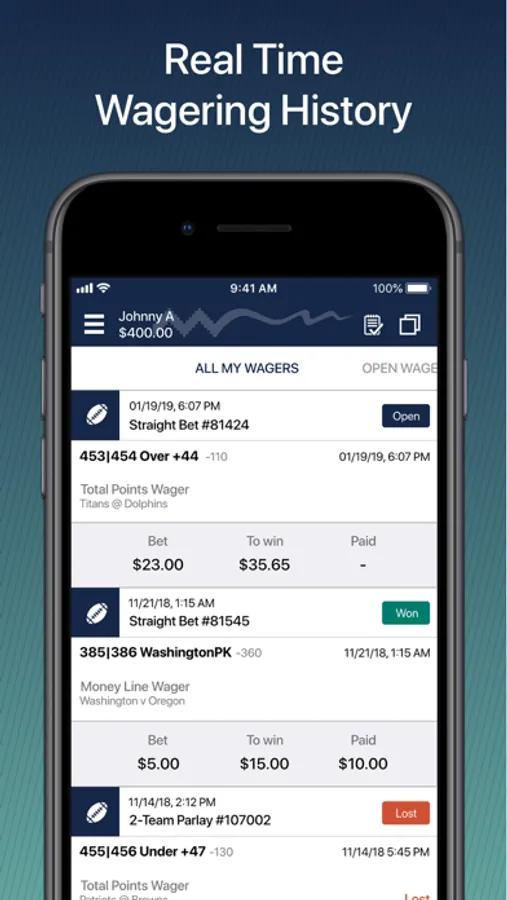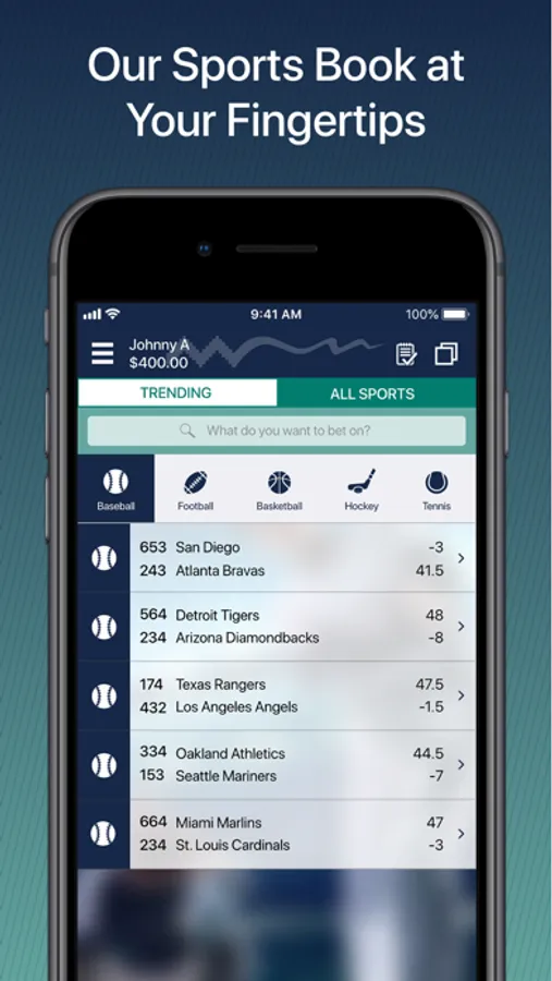 • Bet pre-game and in-game for most major professionaland college sporting events.
