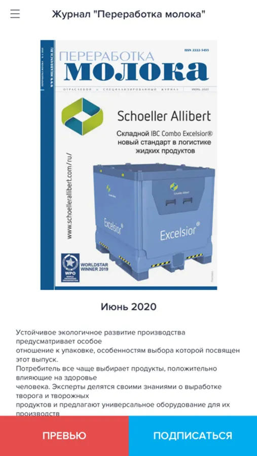 Журнал «Переработка молока» предназначен для широкого круга специалистов молочной отрасли: руководителей предприятий, технологов, микробиологов, химиков, специалистов по сертификации и качеству продукции, поставщиков молочной продукции. Основные задачи издания - комплексное освещение проблем отрасли и обеспечение информационной поддержки специалистов всех сфер деятельности, связанных с молочной индустрией. Выходит с 1998 года ежемесячно.