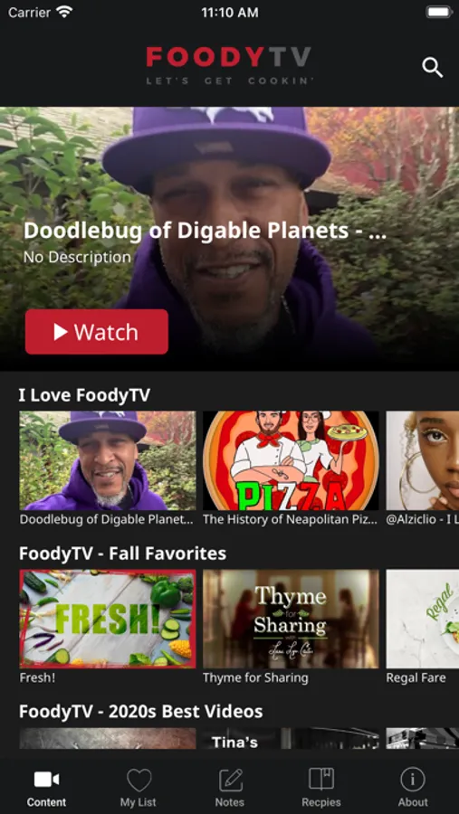 Viewers can also access FoodyTV Live, a 24 hour, 7 day a week streaming channel where the latest network content is released and top content is featured.
