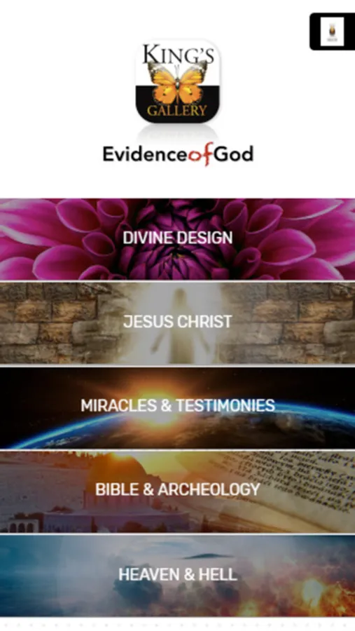 The easiest way to see and share the best evidence of God. Freely accessible within a personal app, this makes sharing God easy! For all truth seekers. The collective, clear display of evidence in 5 powerful categories becomes the doorway to confident faith in Christ and the pathway to real Hope and True Love. King's Gallery is simply the stage where the glory of God is the star! A growing archive of the best documentaries, testimonies and easy to understand teachings that educate, inspire and bring forth a clear awareness of the best evidence available. There's nothing more compelling than seeing the real evidence which points to the One True God!